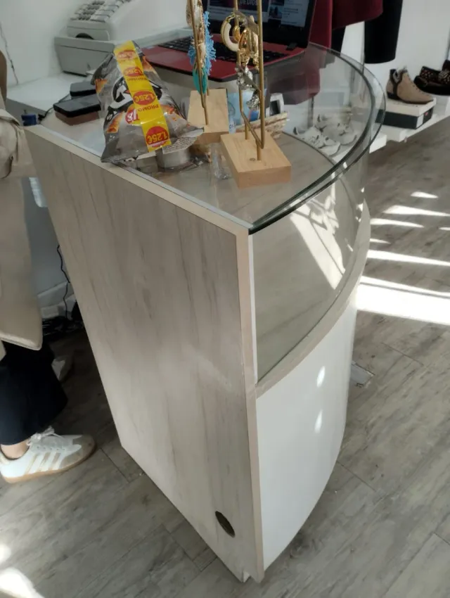 Detalles del productoMobiliario de tienda con diseño curvo y acabado en madera clara y blanco.urge su venta ya por cierre de tienda, llamadas y wasat 692033881.preguntar precio de cada artículo por wasat o por Wallapop o llamadas. Urge ya su venta por cierre de tienda.