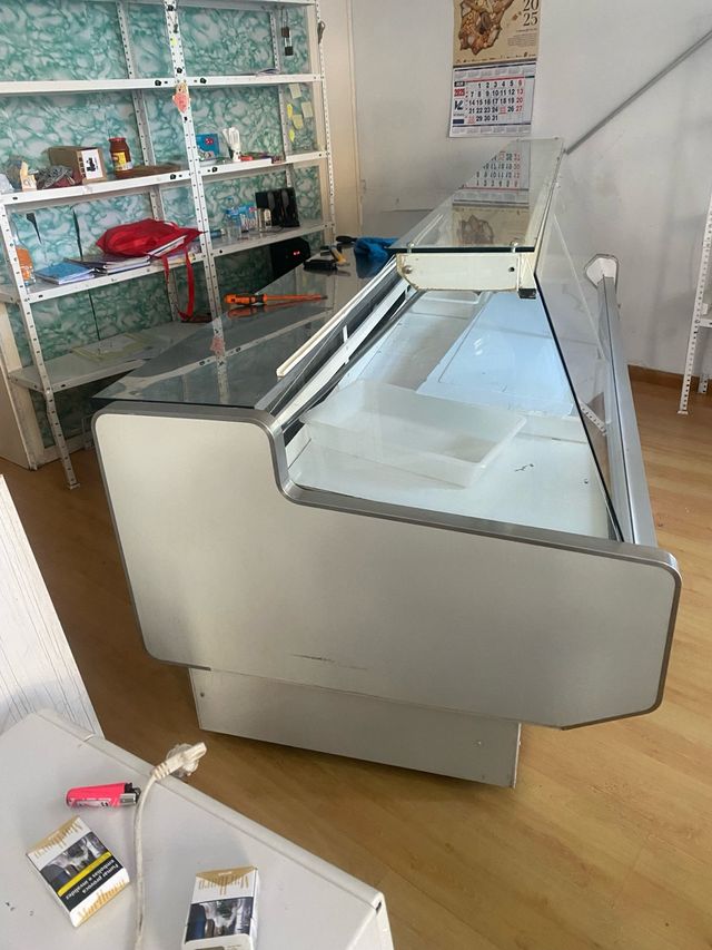 Se vende mobiliario completo para tienda. Ideal para montar tu propio negocio. - Vitrina expositora de cristal. - Estanterías metálicas. - Mostrador.