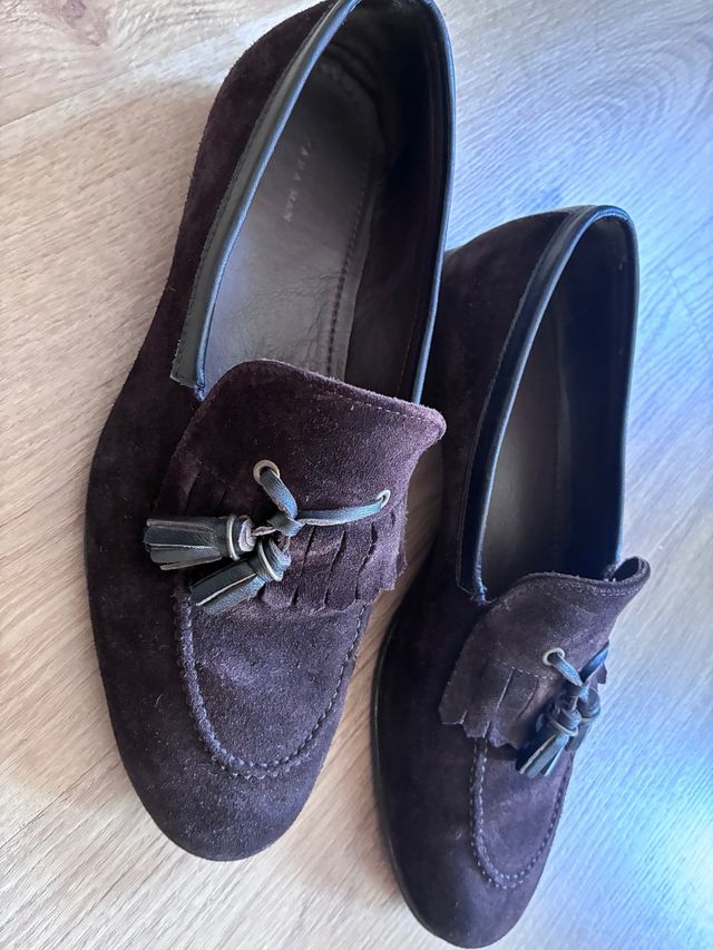 Mocasines Zara ante marrón con flecos