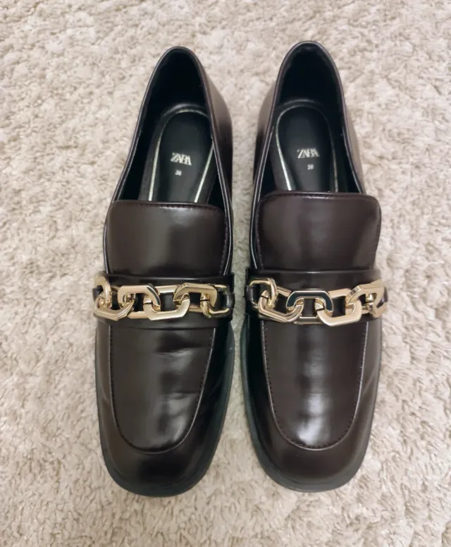 Mocasines Zara Piel Sintética Marrón Talla 38