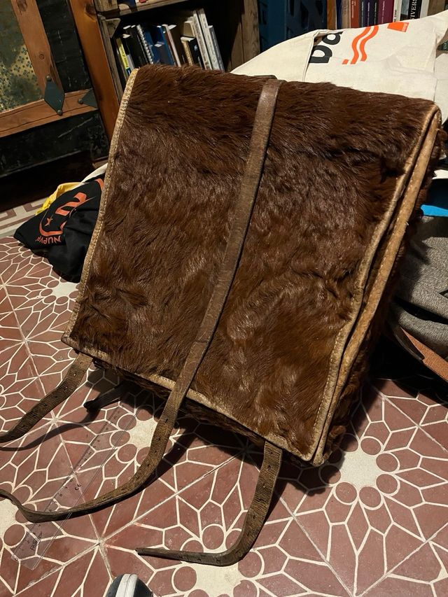 Antigua mochila salvamento de montaña, rígida, peluda, buen estado. 37x37x14 cm