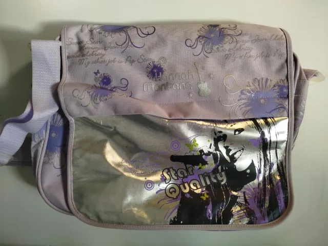 Detalles del productoMochila bandolera con diseño de Hannah Montana, ideal para llevar un portátil.