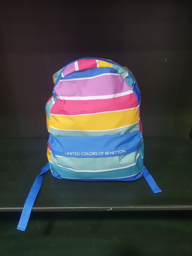 Mochila escolar Benetton en perfecto estado. - Diseño de rayas multicolor. - Asa superior y correas ajustables. - Marca: United Colors of Benetton.