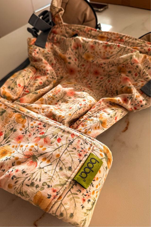 Detalles del productoMochila de porteo Boba con un bonito estampado floral.