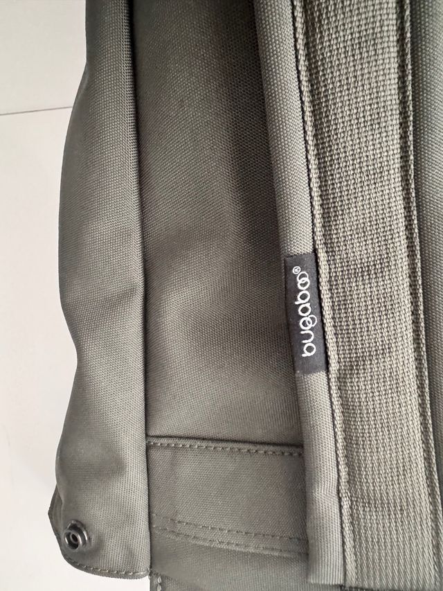 Mochila cambiador de la marca Bugaboo, ideal para llevar todo lo necesario para el bebé. - Color verde militar. - Etiqueta de la marca visible.