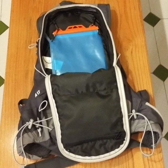 Detalles del productoMochila deportiva tipo camelback de hidratación Quechua, modelo Helium 17L de capacidad + depósito de agua de 2 litros incluido con su tubo/boca. Diseñada para senderismo, running trail o ciclismo: espalda acolchada y tirantes transpirables, correas de pecho y cintura para ajuste estable, varios bolsillos. Peso muy ligero. Utilizada solo 2 veces, la bolsa de agua es nueva a estrenar. Ideal para mantenerte hidratado en rutas, con espacio para cortavientos, barritas y objetos personales sin cargar mucho peso. Nota: El producto se entregará a la primera persona que venga a recogerlo y lo compre, no por orden de petición.