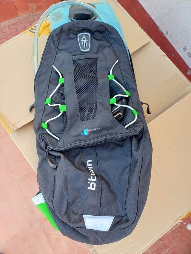 Detalles del productoVendo mochila de ciclismo btwin, negra, con detalles en verde lima y blanco, y capacidad de 2 litros para hidratación y 5 de capacidad. Está en buen estado. Regalo guantes de ciclismo, también negros, talla M.