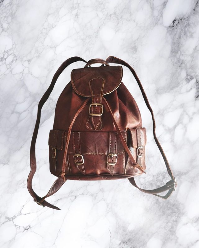 Mochila Cuero Piel Marroquí Bolsillos Ajustable