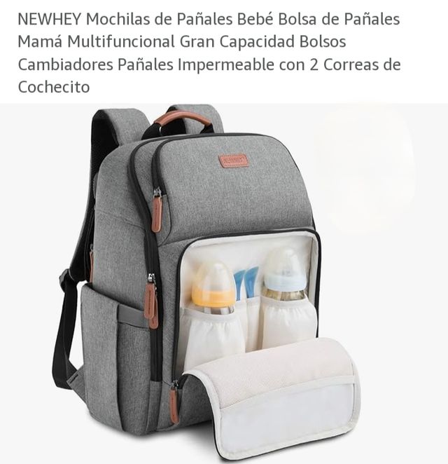 Detalles del productoMochila para el bebé impermeable con gran capacidad (22l) y compartimentos para biberones, pañales, toallitas, cambiadores, etc. Ver fotos descriptivas de la web, precio original 39€ Medidas del producto