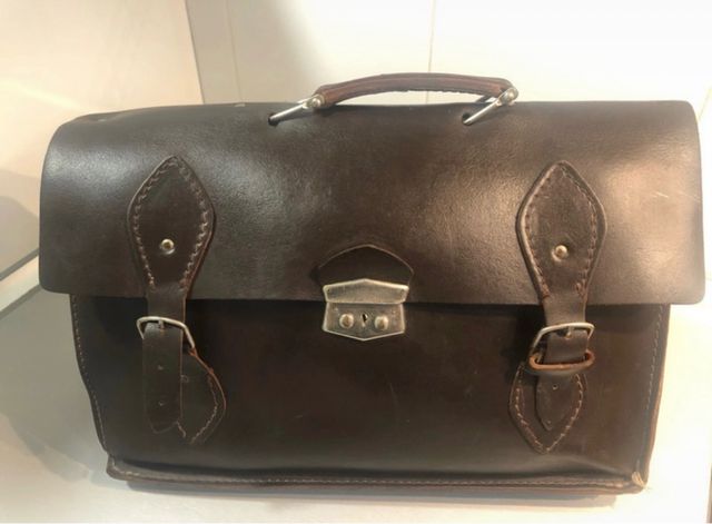 Mochila -cartera de cuero escolar Vintage Años 70