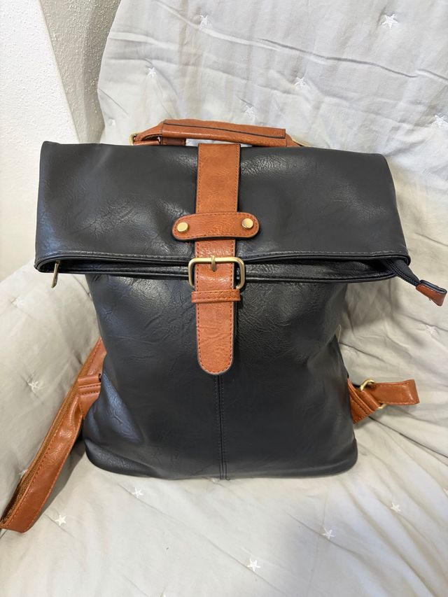 Mochila de piel italiana negra y marrón