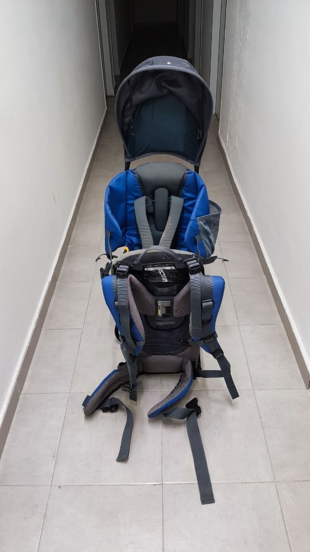 Detalles del productoMochila portabebés Deuter Kid Comfort 1 en color azul y gris. Diseñada para llevar a los niños cómodamente en la espalda.