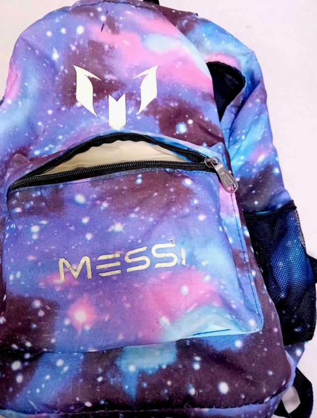 Detalles del productoMochila con estampado galáctico y el logo de Messi.