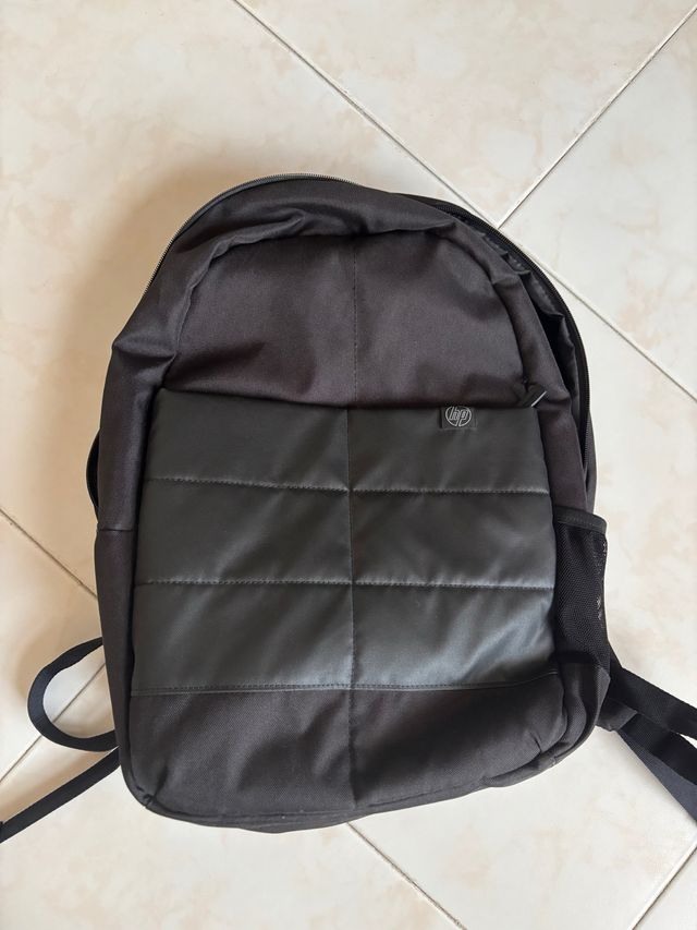 Detalles del productoMochila negra con diseño acolchado frontal y logo de HP.