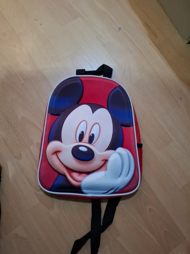 Mochila infantil con el diseño de Mickey Mouse. - Color rojo y azul. - Cierre de cremallera. - Tirantes ajustables. 3 euros cada mochila