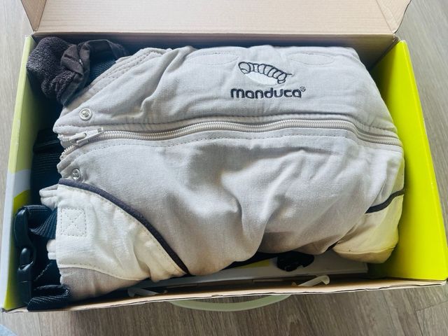 Mochila de porteo Manduca en su caja original. Color: sand. Usada pero en buen estado.