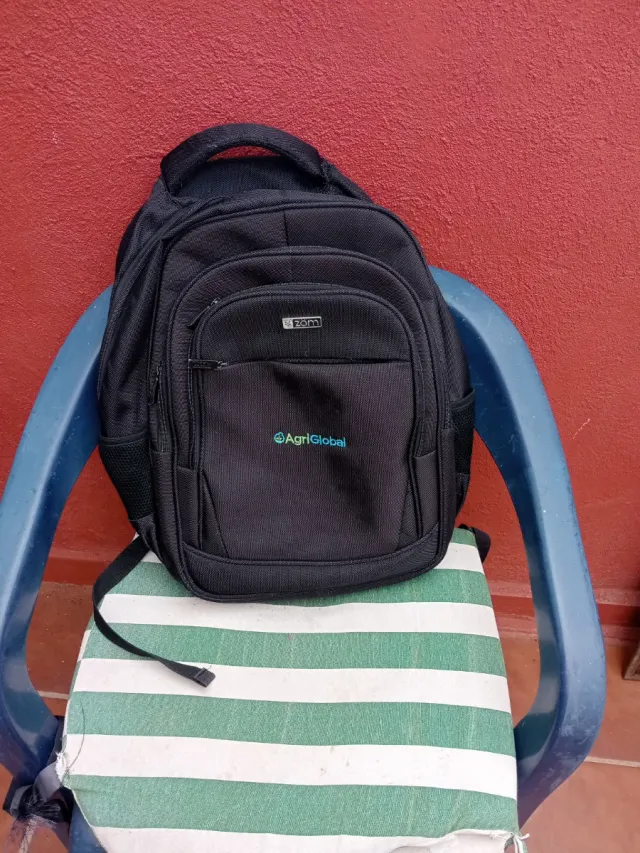 Detalles del productoMochila multifuncional de la marca Zöm con el logo de AgriGlobal. Tiene gran cantidad de bolsillos o apartados lo cual la convierte en la mochila ideal para diversas actividades. Está usada pero en buen estado con cuerda para rato.