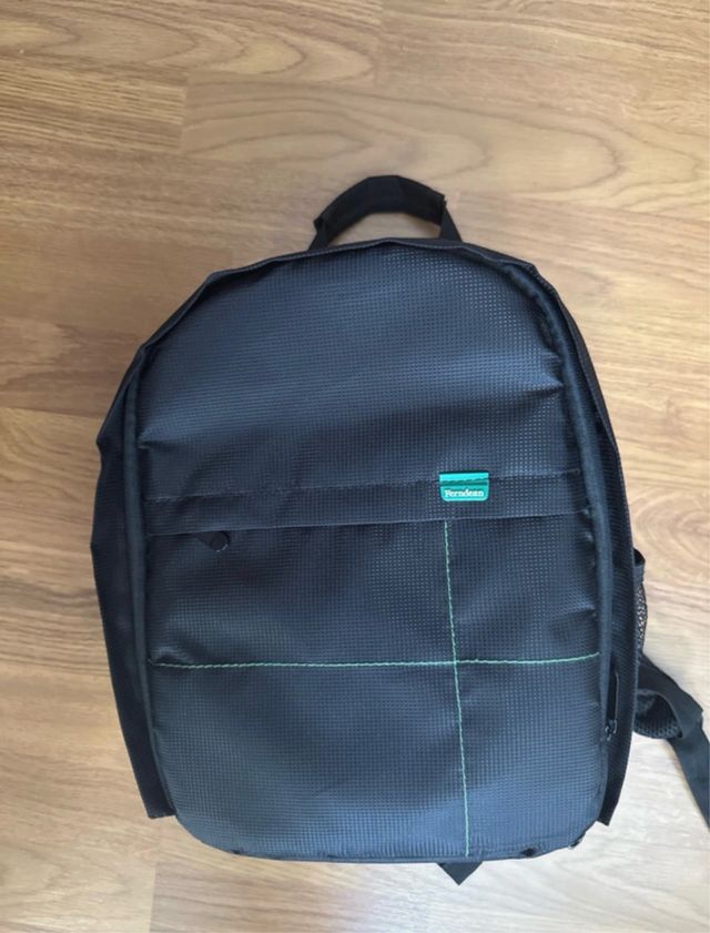 Detalles del productoMochila negra diseñada para transportar cámaras y equipo fotográfico. Cuenta con un compartimento principal y bolsillos adicionales para organización.