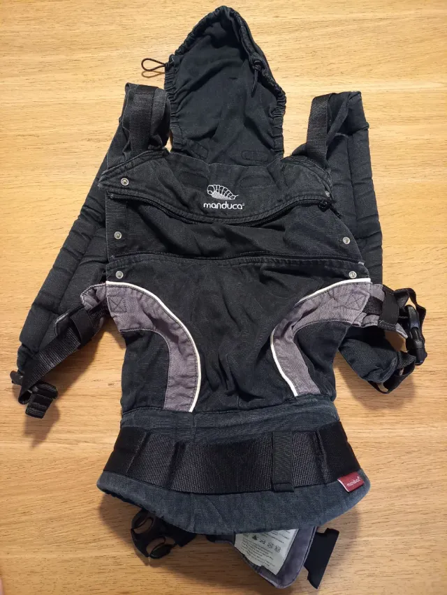 Detalles del productoMochila portabebés Manduca en color azul marino.
