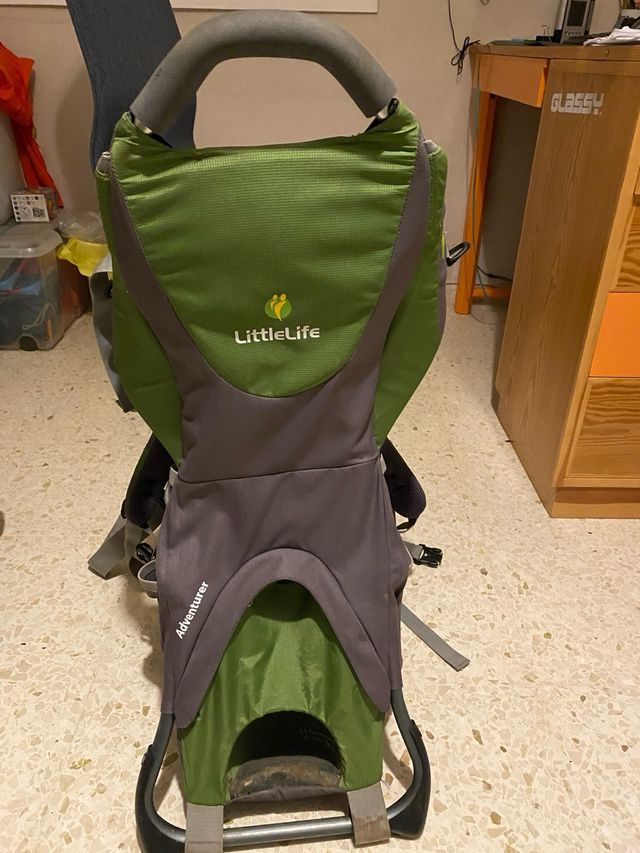 Detalles del productomochila treckking de porteo de niños de gran calidad ligera y cómoda. Marca Littlelife Adventurer. solo 1,8 kg con dos bolsillos laterales y compatimento con cremallera. Tiene un pequeño descosido reparable que se ve en la foto, de ahí el precio