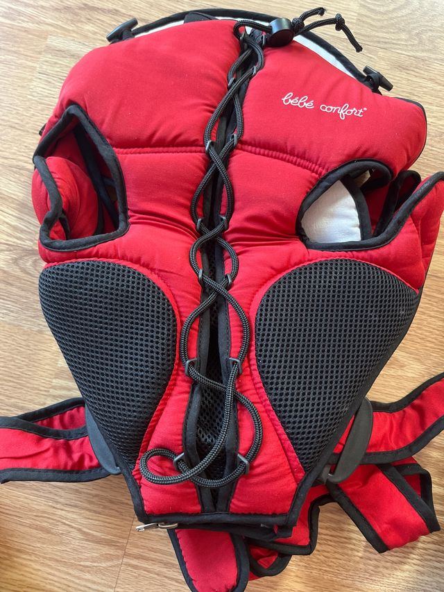 Detalles del productoMochila portabebés Bebe Confort, roja y negra, en buen estado. Ideal para llevar a tu bebé cómodamente.