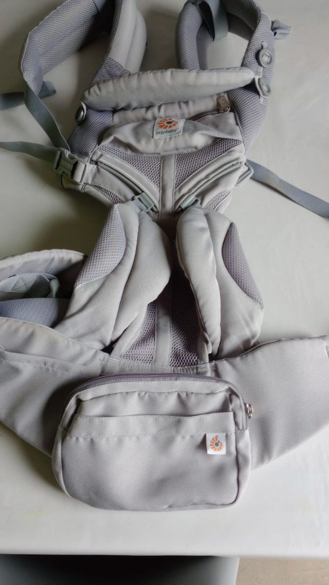Detalles del productoMochila portabebés en color gris, marca Ergobaby.