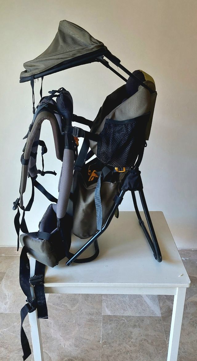 Mochila ergonómica para llevar a tu bebé en excursiones y paseos. - Diseño robusto y cómodo. - Capota protectora. - Cinturones de seguridad ajustables.