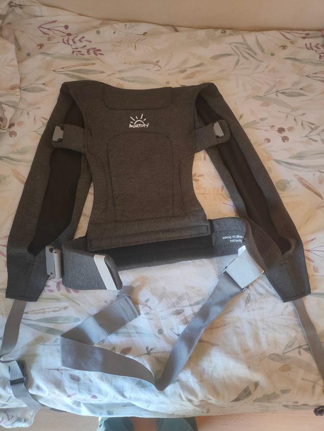 Mochila portabebés de color gris, de 3 a 12 kilos. Muy poco uso.