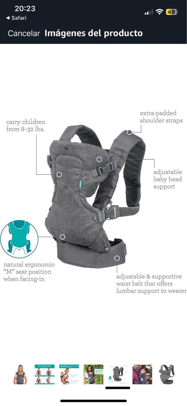 Detalles del productoPreciosa mochila portabebés Infantino de color gris, en perfecto estado.