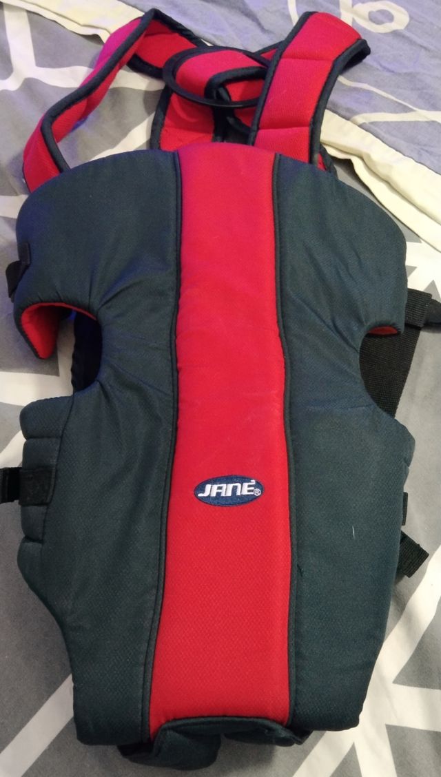 Mochila portabebés Jané, en buen estado. Ideal para llevar a tu bebé cómodamente. - Color rojo y negro. - Marca Jané.