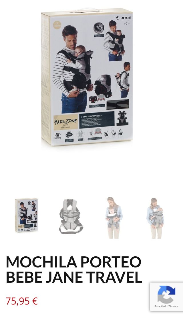 Detalles del productoMochila portabebés marca Jane, modelo Kangaroo, en color gris. Diseñada para llevar al bebé de forma ergonómica.