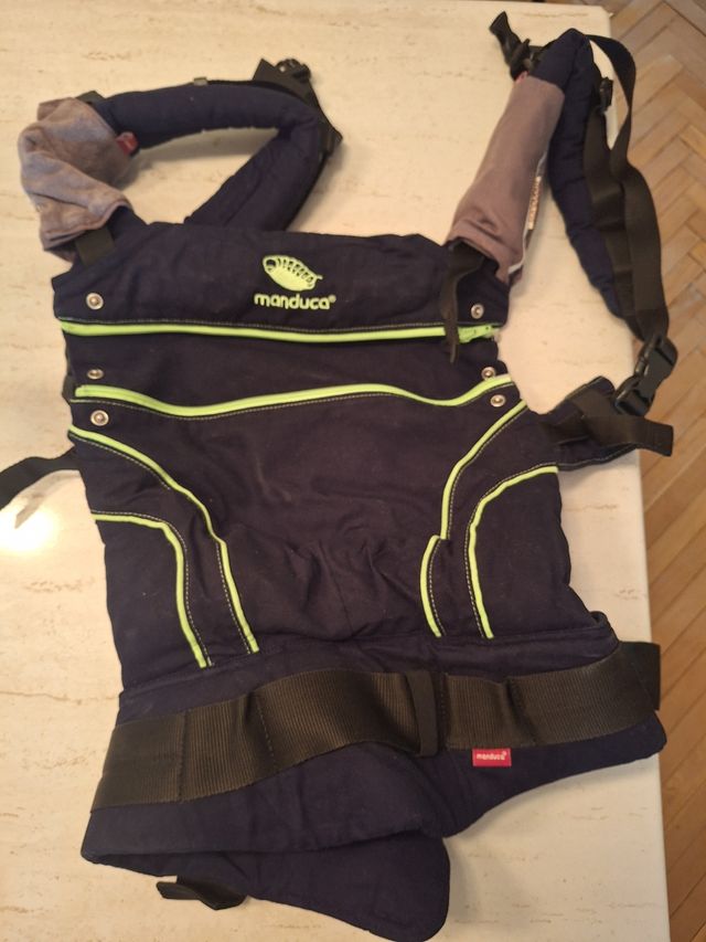 Mochila portabebés de la marca Manduca en color azul. - Diseño ergonómico. - Cierre de seguridad. - Tirantes acolchados.