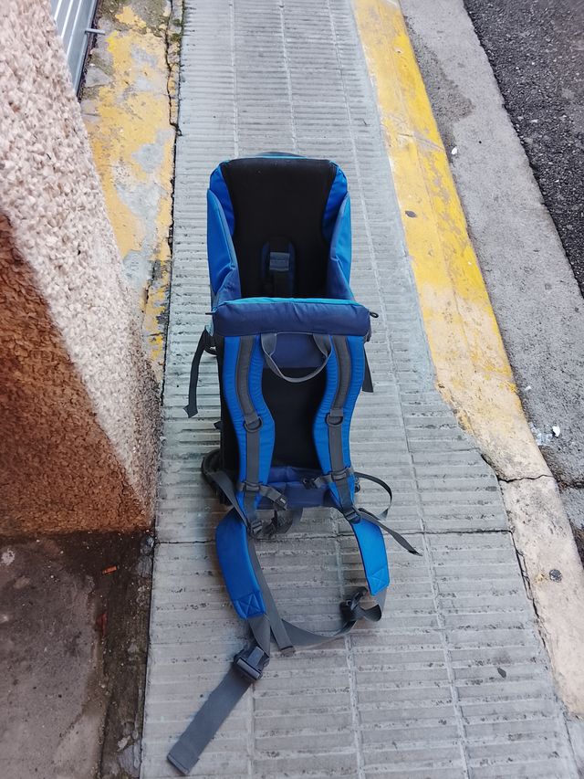 Detalles del productoMochila portabebés en color azul, diseñada para llevar a los más pequeños en tus aventuras de montaña.