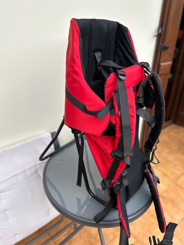 Detalles del productoMochila portabebés de montaña en color rojo.