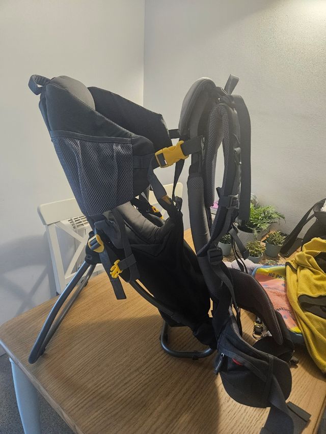 Detalles del productoMochila portabebés diseñada para actividades al aire libre.