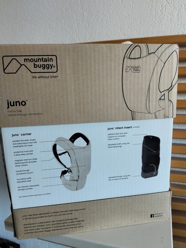Detalles del productoMochila portabebés Mountain Buggy Juno, diseñada para la comodidad y conexión.