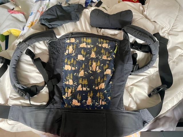 Detalles del productoMochila de porteo Boba con un bonito estampado de osos y árboles.