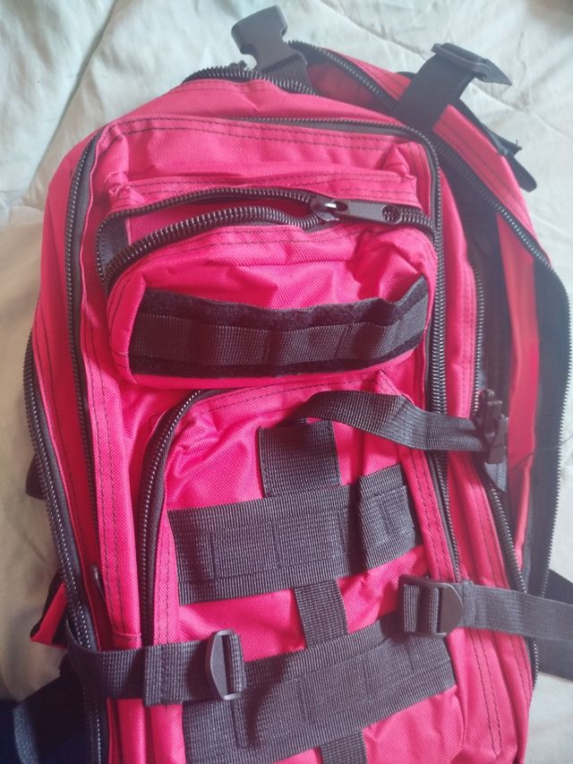 Detalles del productoMochila de senderismo nueva a estrenar con compartimento.  Es de color rojo y tiene correas negras.