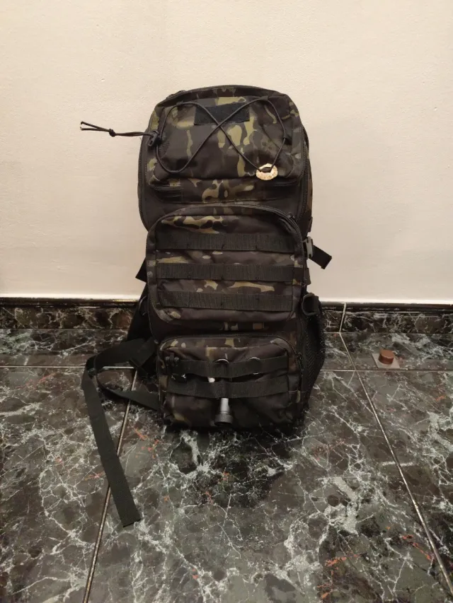 Detalles del productoMochila de estilo militar con un diseño camuflado y una capacidad de 30 litros.