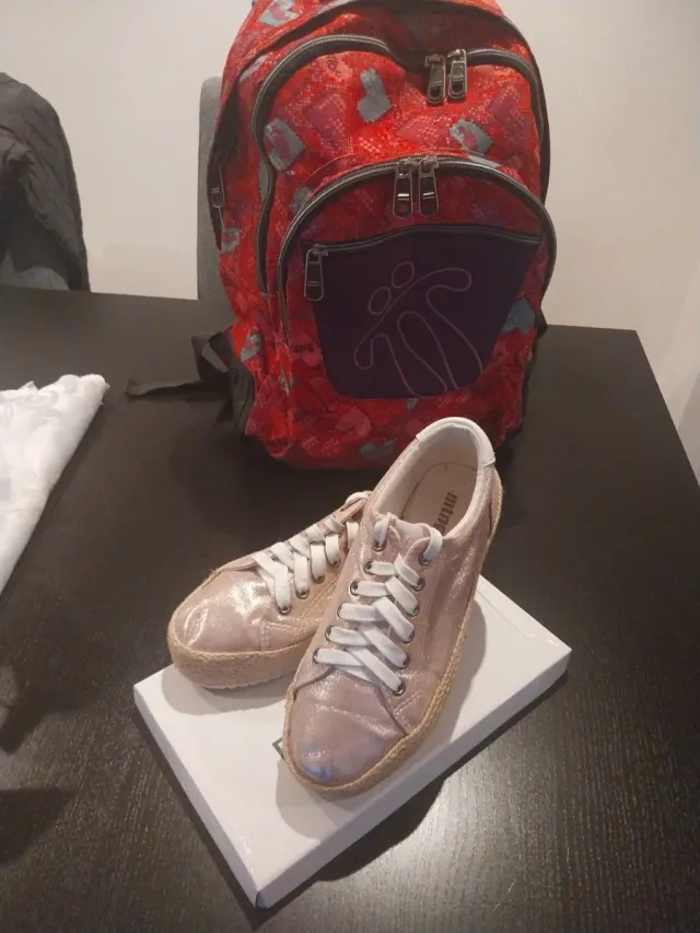 - Zapatillas MUSTANG de estilo casual con cordones blancos y suela de esparto ( regalo)