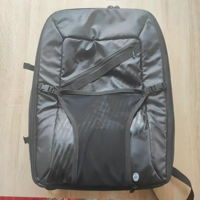 Detalles del productoMochila negra con diseño moderno, ideal para actividades deportivas como triatlon, ciclismo o running, 10 bolsillos para almacenar todos tus accesorios, malla exterior para llevar el casco