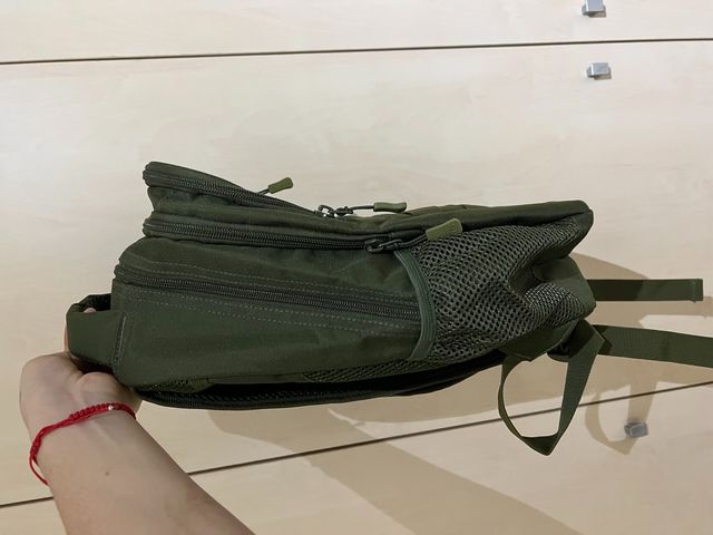 mochila verde de 15L. Bastante espaciosa. Está nueva, solo la he usado 2 veces para ir al trabajo
