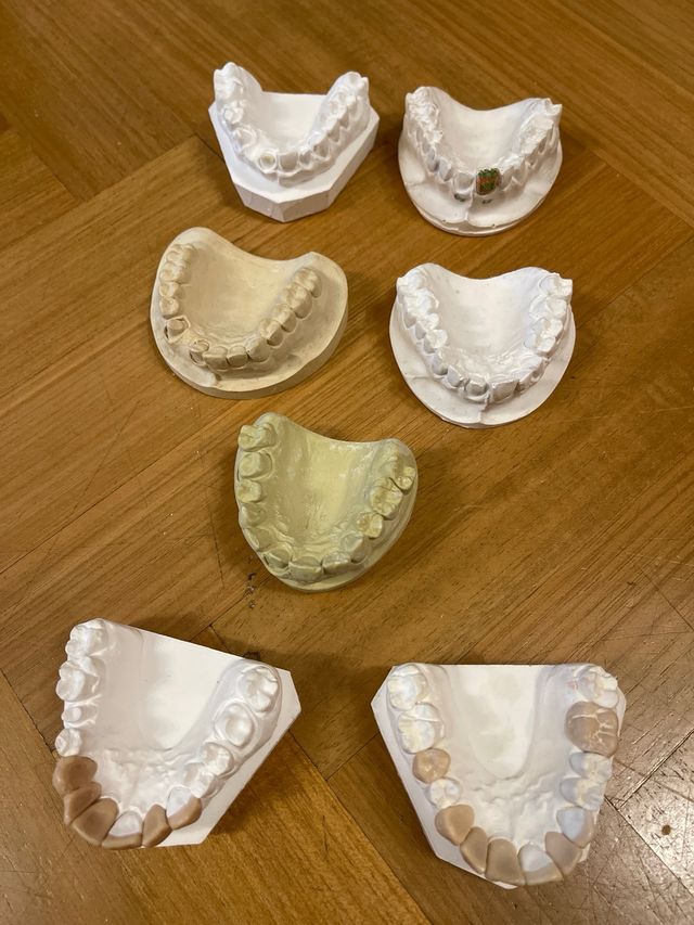 Modelo inferior (1) con muñones y con su modelo estudio (1) para imitarlo, para practicar encerado de dientes.