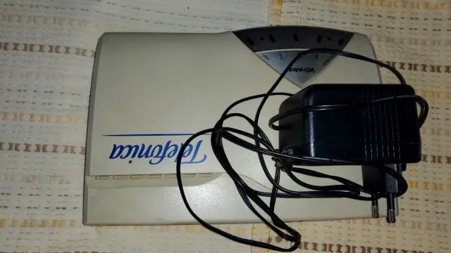 Módem router ADSL de la marca Telefónica. Dispone de conexiones LAN y Wireless. - Diseño en color beige. - Incluye adaptador de corriente.