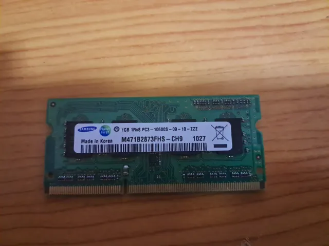 Módulo de memoria RAM Samsung de 1GB. - Capacidad: 1GB - Tipo: DDR3 - Velocidad: PC3-10600S - Voltaje: 1.5V - Fabricado en Corea