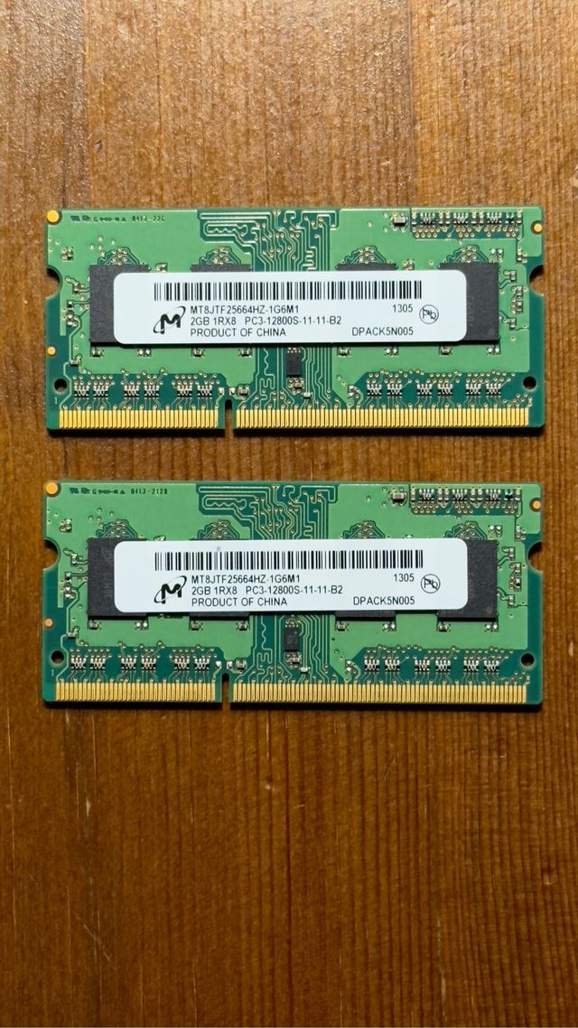 Dos módulos RAM 2 gb pc3-12800s 11-11-B2 Procedentes de macbook pro mid 2012 Sin apenas uso Validos para otros modelos
