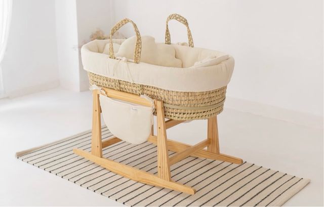 precioso moises para bebe con su balancin de madera. Es ideal. ESTA IMPOLUTO el moises y los textiles. Textil color rosa bebe a recoger en Coruña