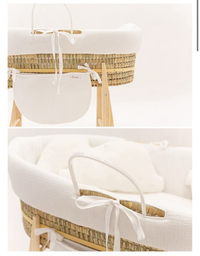 Detalles del productoMoises de cucos baby color blanco. incluye fundas, almohadas, colchón, patas, ...