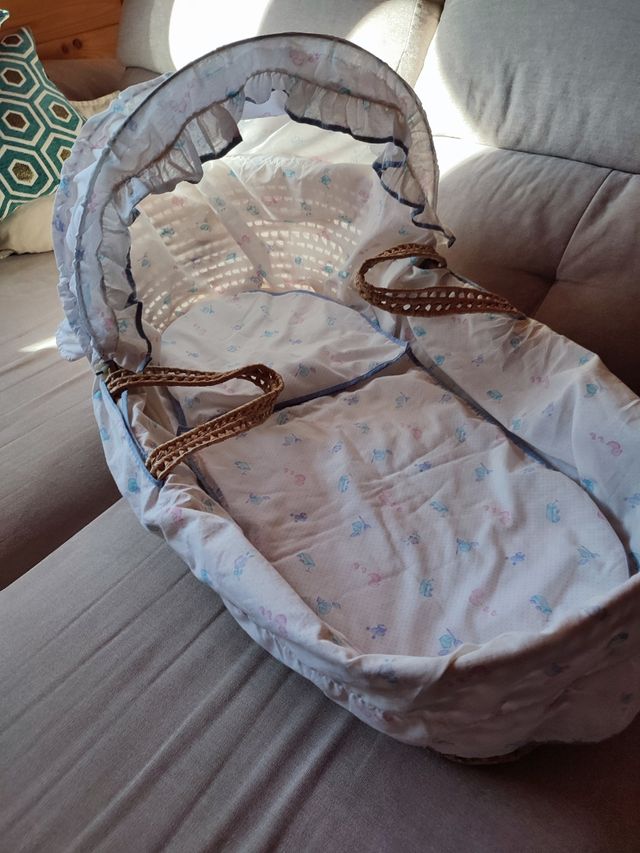 Moisés de bebé con colcha y funda. Medidas colcha: 80x33cm.