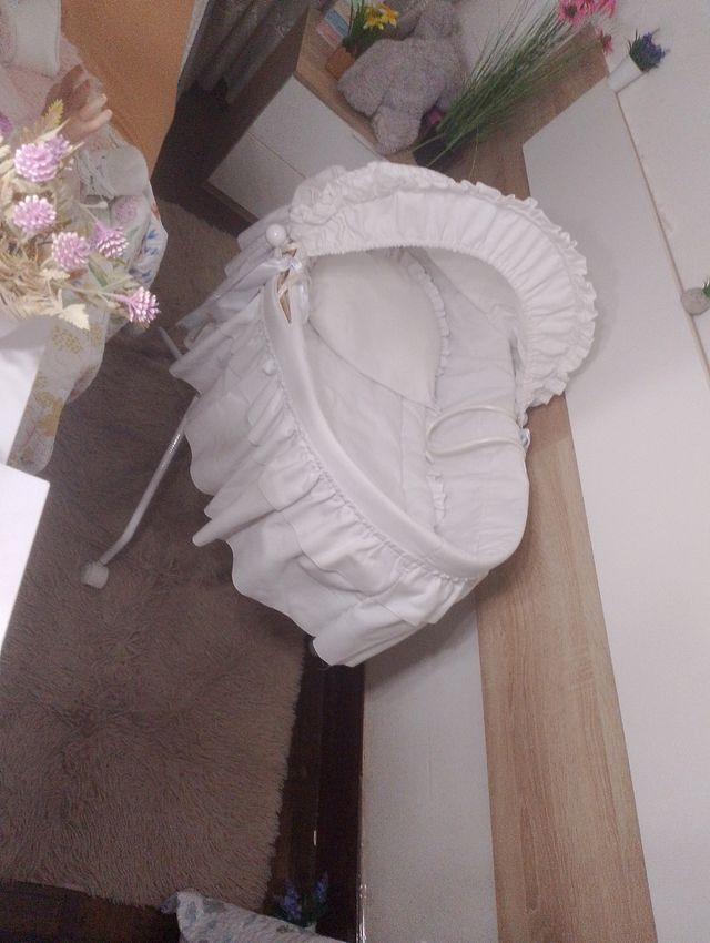 Detalles del productoPrecioso moisés para bebé, en color blanco roto, con colchón y almohada a juego. Está en perfecto estado.